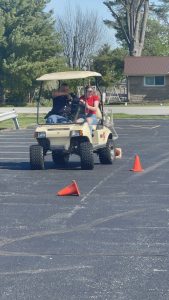 In preparation of 2025 Prom, SRO Tyler Hanna arranged for the Indiana State Police to come speak to our juniors and seniors about the dangers of impaired driving. Students listened the presentation “Prom Night: Make It a Night to Remember, Not Regret” and then went to the west parking lot to try to walk a straight line or drive a golf cart while wearing the impairment goggles.